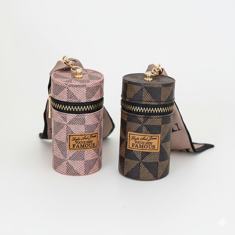 Sac de voyage vintage en cuir PU pour rouge à lèvres Porte-clés de sécurité multicolore Porte-rouge à lèvres Mini sac à main Porte-monnaie Porte-clés