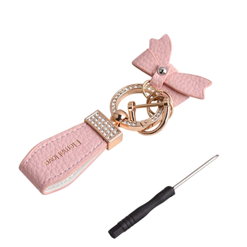 Porte-clés élégant en cuir rose avec nœud pour femmes Porte-clés de voiture Portefeuille et décor de sac